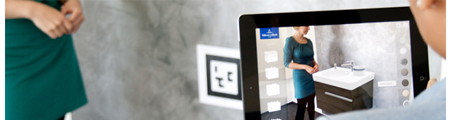 Download the Augmented Reality app and project ViPrint decors, true to the original, into your own bathroom. Find out more