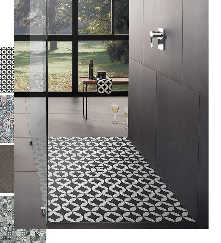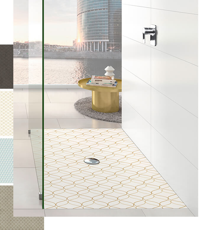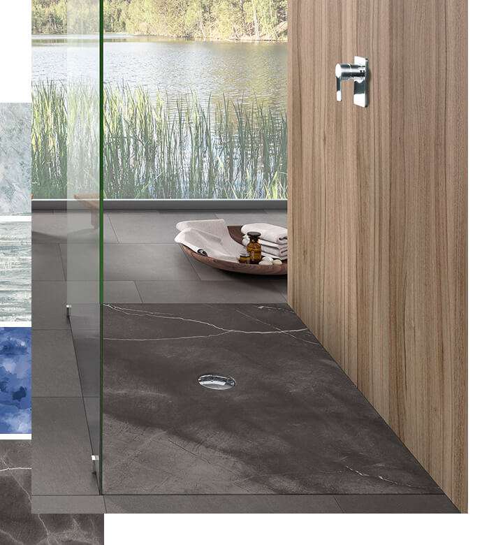 Fascinating linear effects that magically attract the eye: with their geometric patterns and graphic structures, these decors create an almost spatial depth on the floor. Creating continuously changing perspectives in which to lose yourself every time you shower. Whether modern or classic, these timelessly elegant patterns will blend harmoniously with any bathroom style.